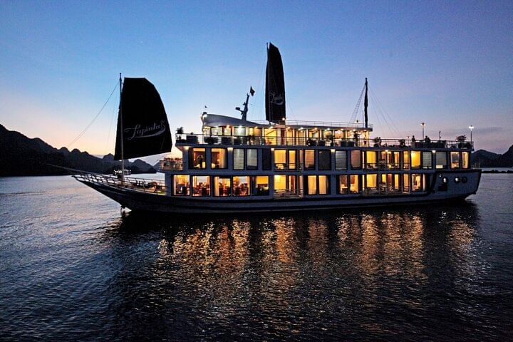 This tour offer a luxury trip on one of the finest mid-size cruise ships on the sea route of Ha Long Bay to Lan Ha Bay. The cruise is a brand-new cruise of 18 spacious cabins, built in full windows, ample deck and well-equipped interior and she possibly owns the top customer services. Our aims at an ultimate leisure, perfect for couples and families to explore Lan Ha Bay, and to discover untouched areas within the World Heritage Ha Long Bay ensemble.