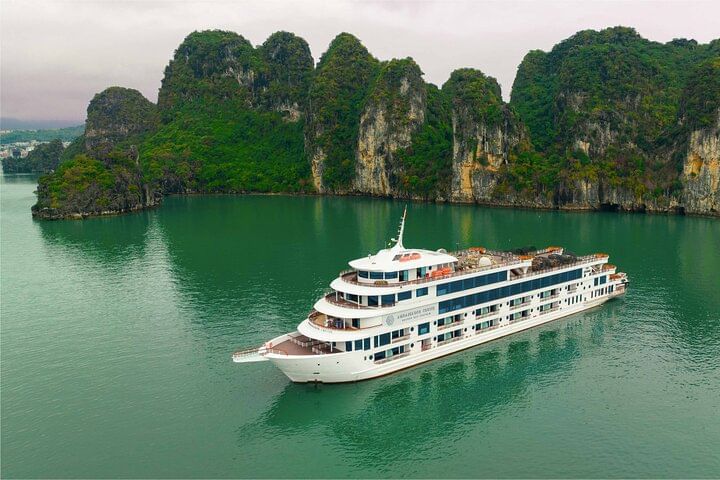 Join Our Cruise for an extraordinary day journey, the largest cruise in Halong Bay. Experience the breathtaking beauty of this UNESCO World Heritage site, explore hidden gems, and relish delicious meals. Unwind on the sundeck amidst stunning landscapes and make cherished memories that will last a lifetime. Don't miss this unparalleled experience!